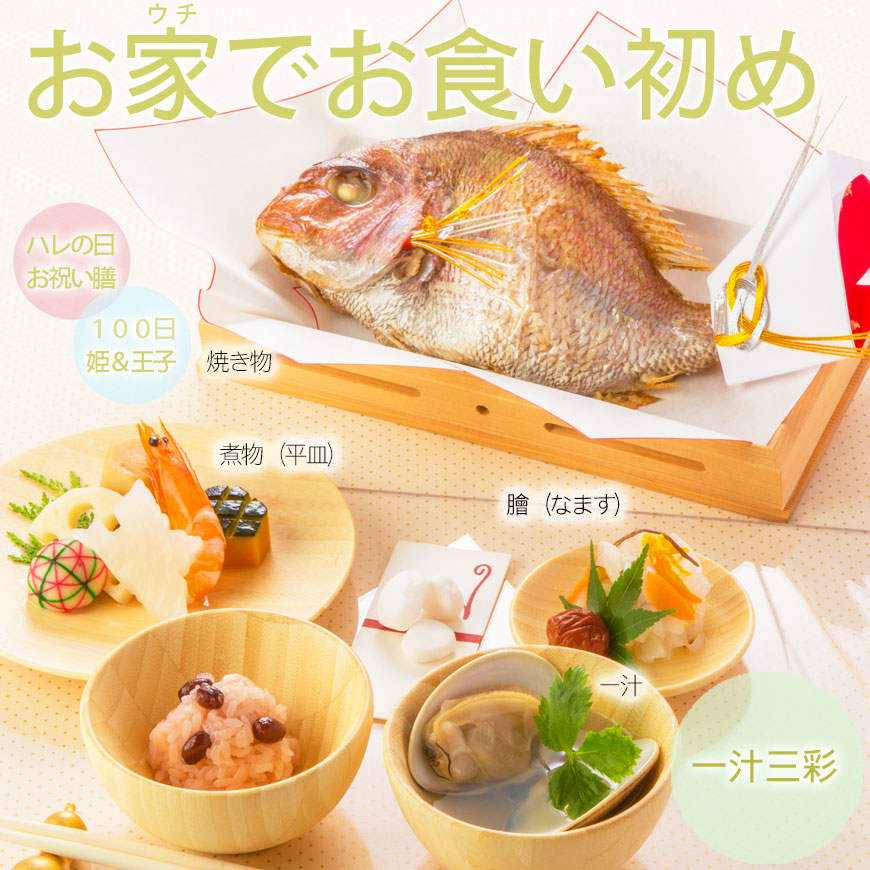 手軽にお家の食器に盛り付けてお食い初めの儀式をお楽しみいただけます。
